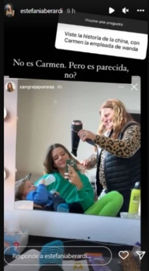 En medio de este problema China Suárez realizó un peculiar posteo mostrándose muy unida a su peluquera personal. Lo que llamó la atención de muchas personas es que la mujer era muy parecida a la empleada de Wanda Nara. Incluso la periodista de espectáculos, Estefanía Berardi, llegó a decir que la actriz se encontraba con Carmen. “¿Viste la historia de La China? Está con Carmen, la empleada de Wanda”, comentó la panelista en LAM. Aunque luego aclaró que lo decía por el gran parecido de la pelquera con la empleada doméstica.