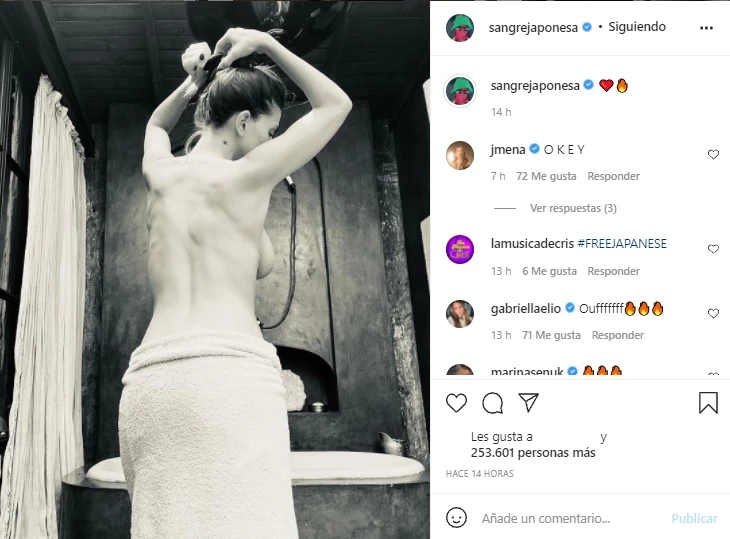 Entre los tantos mensajes que recibió la artista, algunos seguidores comentaron pícaros: "¿Quién te sacó la foto?"; "Benja"; "La foto la sacó Vicuña".