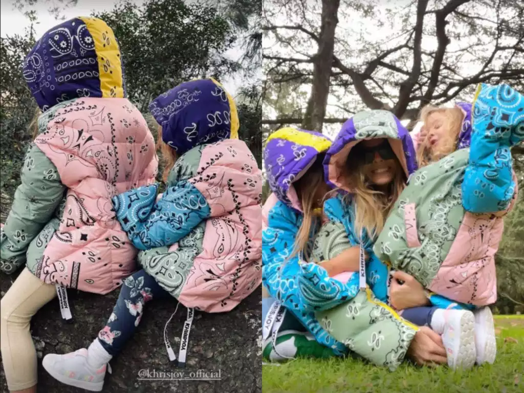 En la fotografía se los puede ver dando un paseo al aire libre y bien abrigados debido a las bajas temperaturas. Además, en sus historias de Instagram mostró que sus pequeñas tenían el mismo modelo de chaqueta que fue considerada por los expertos en moda como tendencia de esta temporada invernal.