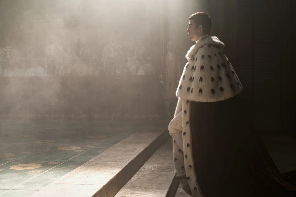 RHIMES: Con el rey George tenemos la oportunidad de explorar a un hombre que jamás llegamos a conocer en el mundo de Bridgerton. Siempre ha sido inaccesible en Bridgerton, porque su mente ya ha partido. Pero en este mundo, a través del rey George, realmente llegamos a ver cómo se siente atravesar un proceso así, cómo se siente perder contacto con la realidad. Nunca decimos exactamente qué le sucede. Podría ser algo mental, algo físico, algo neurológico, pero, sea lo que sea, se va apoderando de él, y lo vemos luchar contra eso.