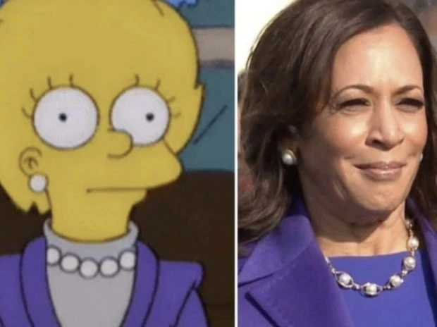 En el episodio en el que Lisa se convierte en la primera mujer presidenta de los Estados Unidos, precisamente como sucesora de Donald Trump, si bien la conexión es un poco débil porque el cargo no es el mismo, Lisa luce el mismo atuendo que Kamala en la toma de posesión, un traje violeta, con collar y aros de perlas incluidos.