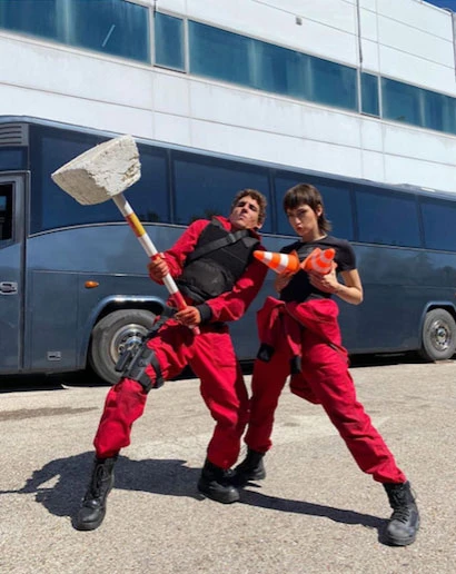 “Armados hasta las tetas, siempre @miguel.g.herran”, expresó a pura "poesía" quien en la ficción de Netflix le da vida a Tokio, de la misma manera que Miguel Herrán (24) encarna a Berlín, con quien mantenía una pasional y explosiva relación de amor.