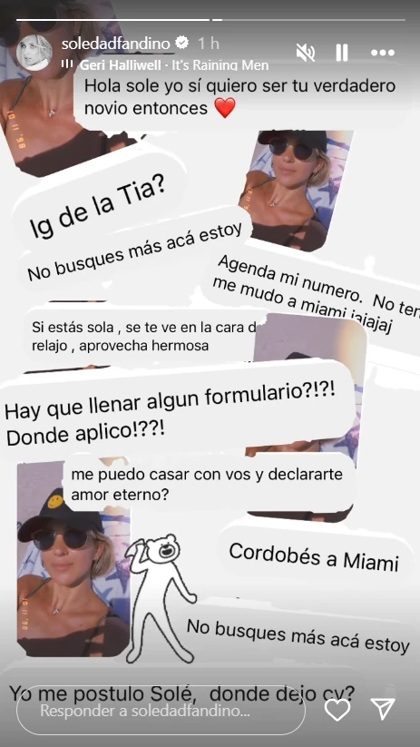 "Si siguen diciendo que estoy con gente que no estoy, se me va hacer muy difícil encontrar a alguien para sí estar, para encontrar una pareja. O sea, hello, estoy sola, acá, con la tía ¡Gracias!", cerró Fandiño en la primera historia que subió desde las playas de Miami mientras tomaba sol con su tía.