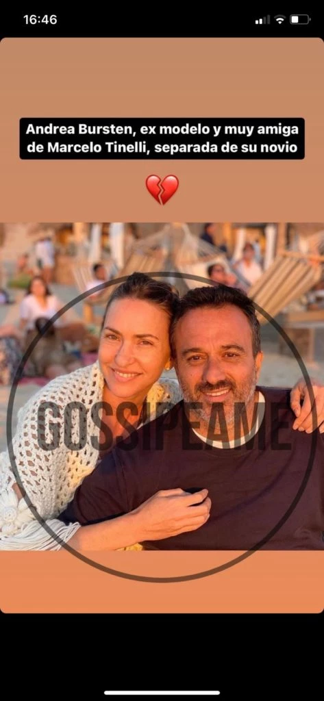 “Andrea Bursten, ex modelo y muy amiga de Marcelo Tinelli, separada de su novio”, escribió en sus Stories la cuenta de Instagram Gossipeame.