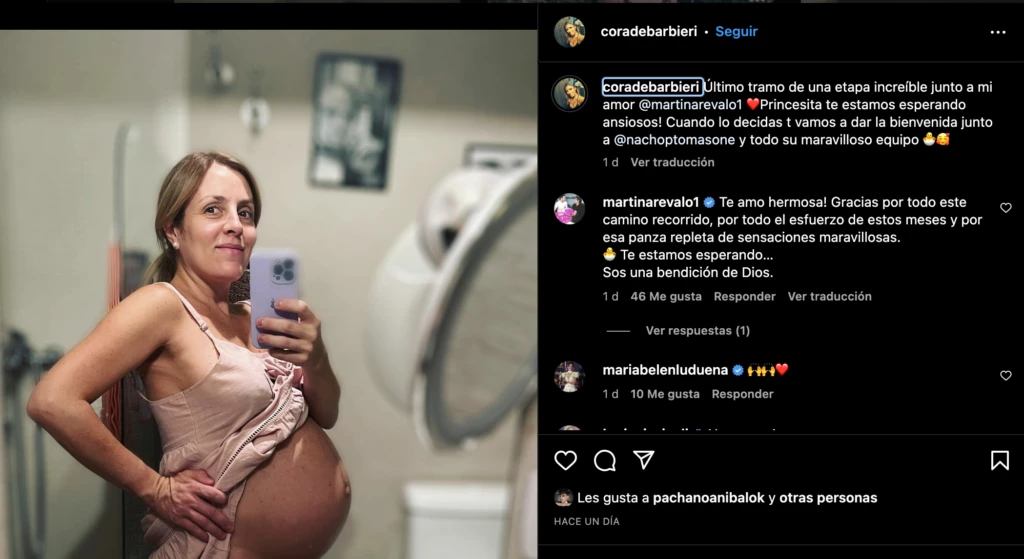 El último posteo de Cora Debarbieri fue hace un día, con la panza enorme, y escribió: "Último tramo de una etapa increíble junto a mi amor Martín. ¡Princesita te estamos esperando ansiosos! Cuando lo decidas te vamos a dar la bienvenida junto al doctor y todo su maravilloso equipo", publicó.