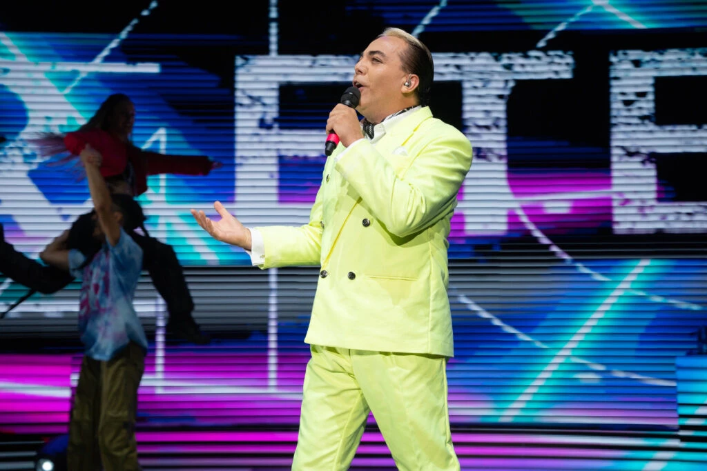 Cristian Castro se lució en el escenario con un traje amarillo fluorescente durante las dos horas de su espectáculo en el Movistar Arena de Buenos Aires, ayer por la noche, como parte de su gira "Le canta al amor".