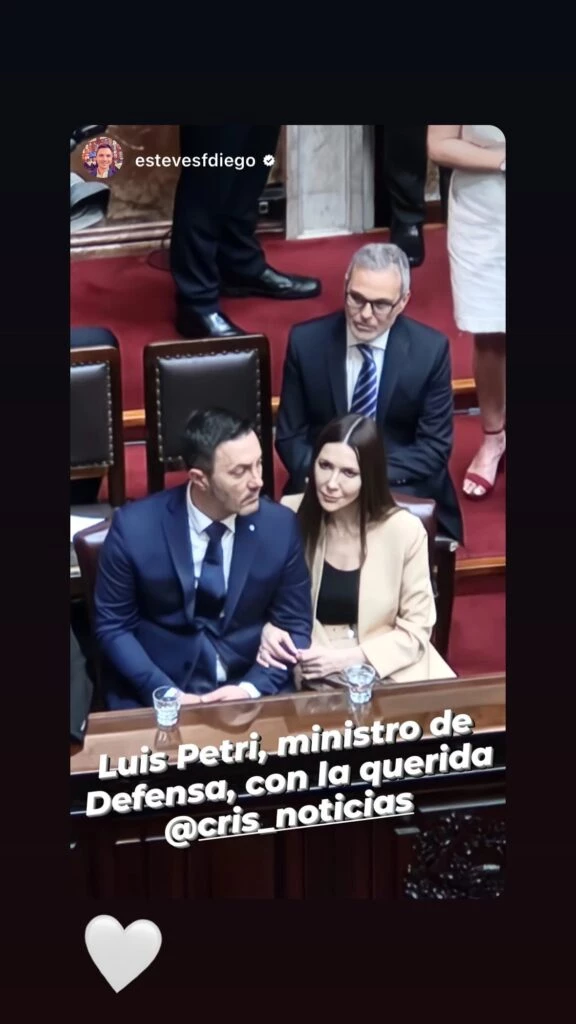 Por lo pronto, no se manifestó en redes sociales después de que se conociera la entrevista en LN+. Pero sí se la vio en el Congreso, acompañando a Luis Petri en la asunción del nuevo gobierno de todos los argentinos.