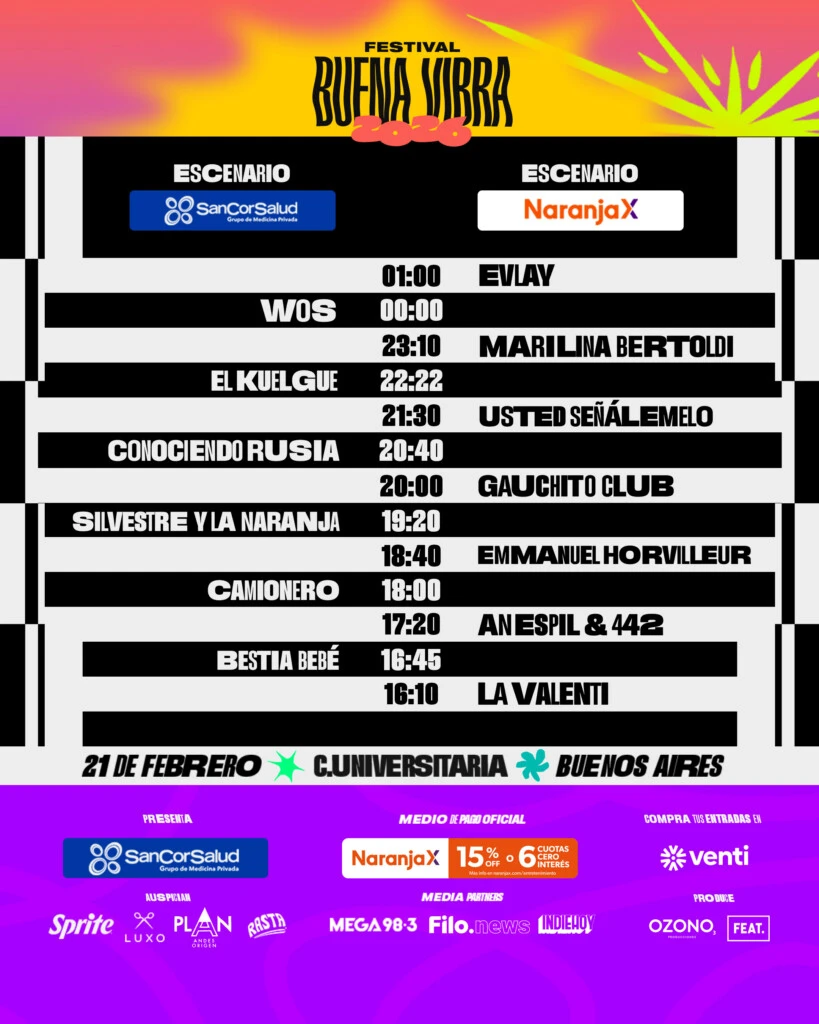El festival Buena Vibra continúa consolidándose como uno de los eventos más representativos de la escena alternativa argentina y regresará el próximo 21 de febrero con una nueva edición en Ciudad Universitaria. Desde las 16 horas y a lo largo de una única jornada, el público podrá recorrer una grilla diversa que combina rock, pop, indie y sonidos urbanos, en un encuentro que año a año amplía su alcance.