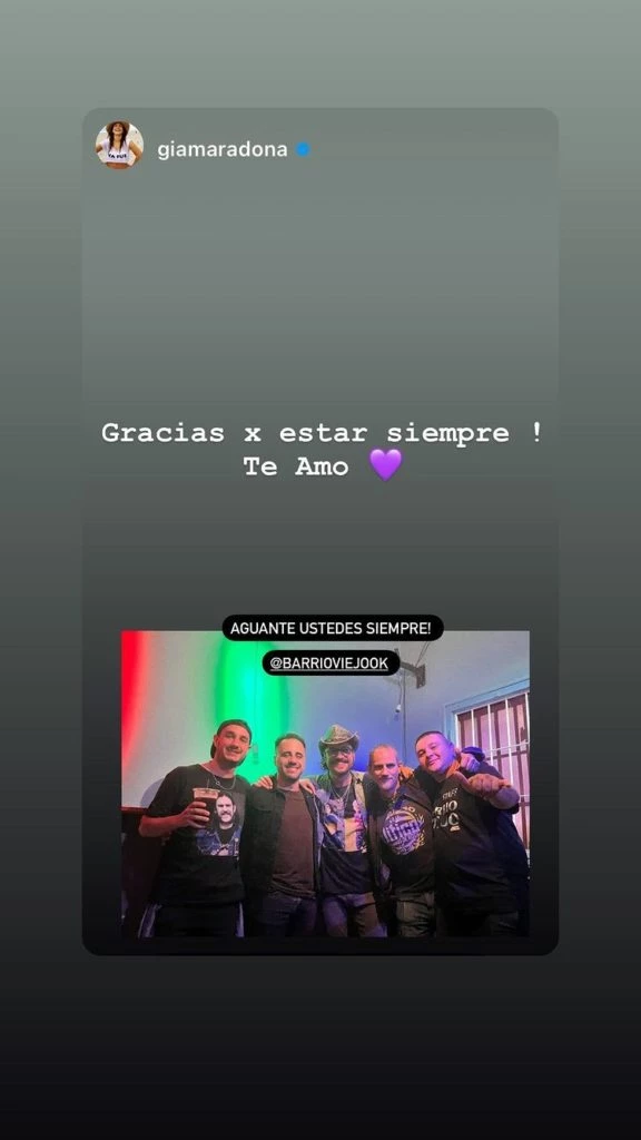 Giannina compartió una foto de Daniel junto a su banda y escribió: "Aguante ustedes siempre". Lejos de quedarse atrás, Osvaldo subió la postal y agregó un mensaje de amor: “Gracias por estar siempre. ¡Te amo!”, escribió con un emoji de un corazoncito violeta.