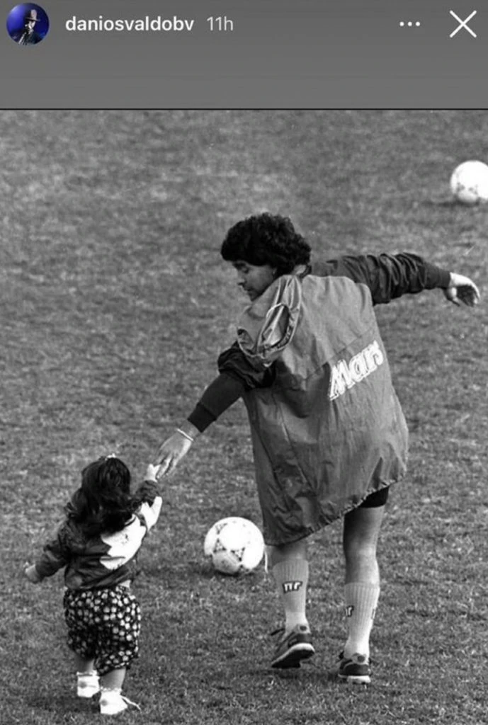 Sin escribir ninguna frase ni haciendo referencia al día, Osvaldo solo se limitó a compartir una tierna foto de una pequeña Gianinna caminando de la mano con su papá, que vestía el equipo de entrenamiento del Napoli, club en el que Maradona jugó desde 1984 hasta 1992 y es ídolo.