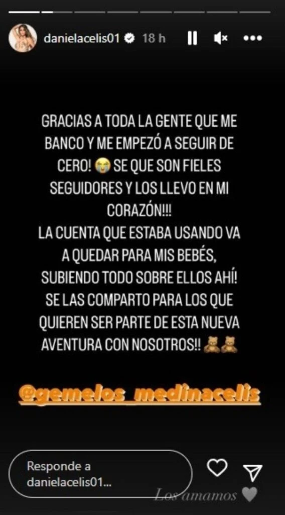 Sin embargo, no todo fue color de rosas durante estos meses. Semanas atrás, le dieron de baja Instagram, su fuente principal de trabajo, donde realizaba publicidades con marcas. Ante esto, Celis se abrió una nueva cuenta pero únicamente para mostrar a sus gemelos, llamada @gemelos_medinacelis, donde comparte algunos de los momentos más dulces de su embarazo.