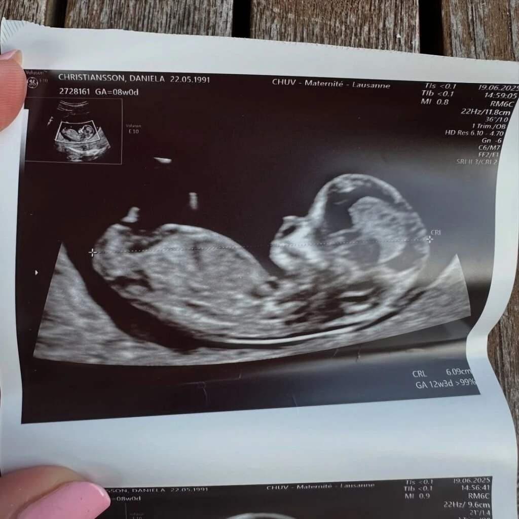 Christiansson sorprendió a sus más de 170 mil seguidores de Instagram al anunciar este nuevo embarazo con tiernas postales. La primera fue una foto de ella embarazada y de perfil, parada en un balcón con vistas a un hermoso paisaje montañoso y un valle verde. Daniela aparece descalza, vestida con un ajustado vestido blanco y tiene sus manos sobre su vientre, mirando hacia el horizonte.