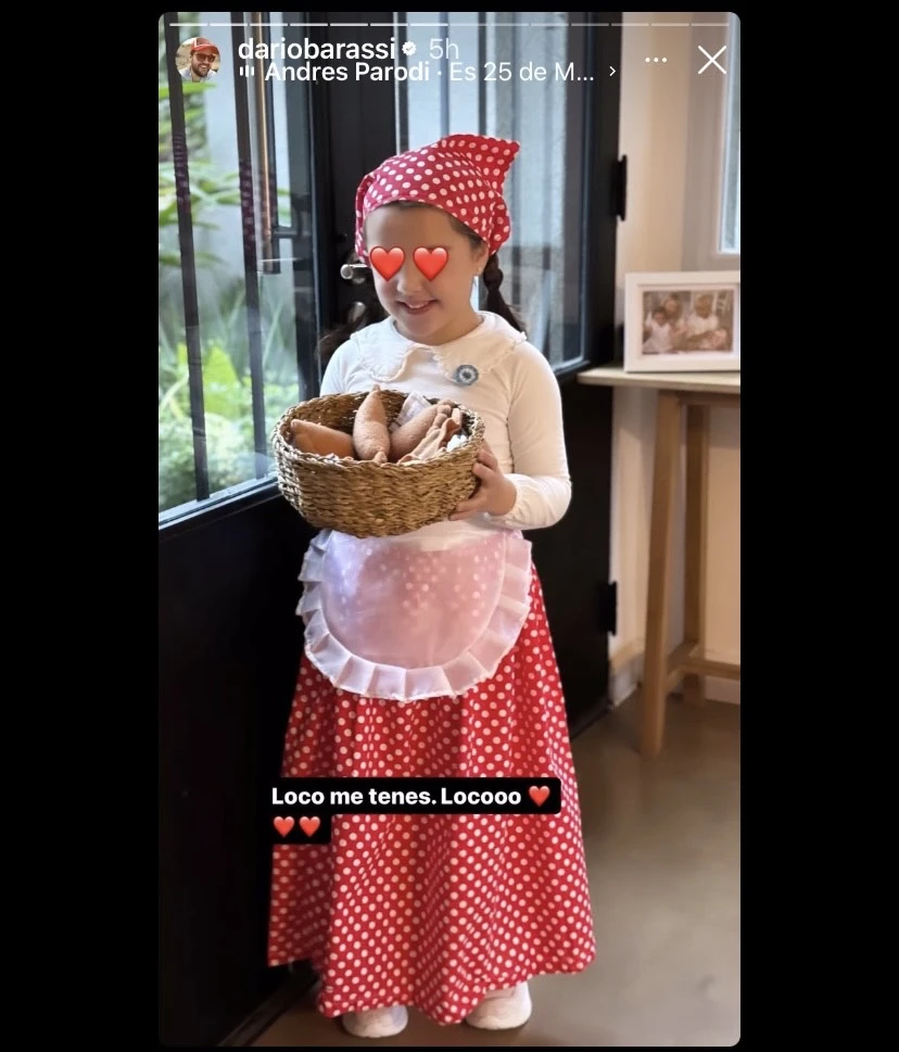 Emilia, la hija mayor de Darío Barassi -conocida como "La Pipi", porque asi la llama su papá- hoy tuvo el acto del 25 de mayo en el colegio y el conductor de eltrece se mostró muy conmovido por su performance sobre el escenario.