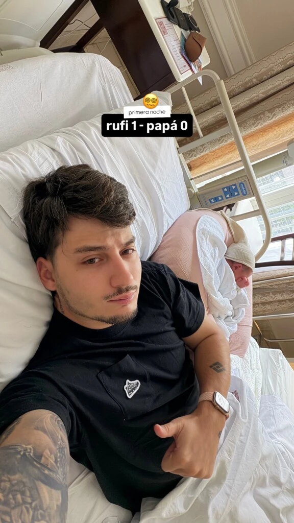 Uriel, por su parte, también compartió su emoción. En varias historias de Instagram se mostró sosteniendo a Rufina con delicadeza, todavía con la ropa del sanatorio, y sumó una frase breve pero contundente: “Amores de mi vida”. En otra imagen, se lo vio junto a la cuna transparente del hospital, entre el cansancio y la felicidad de la primera noche, con un toque de humor: “Rufi 1 – papá 0”.