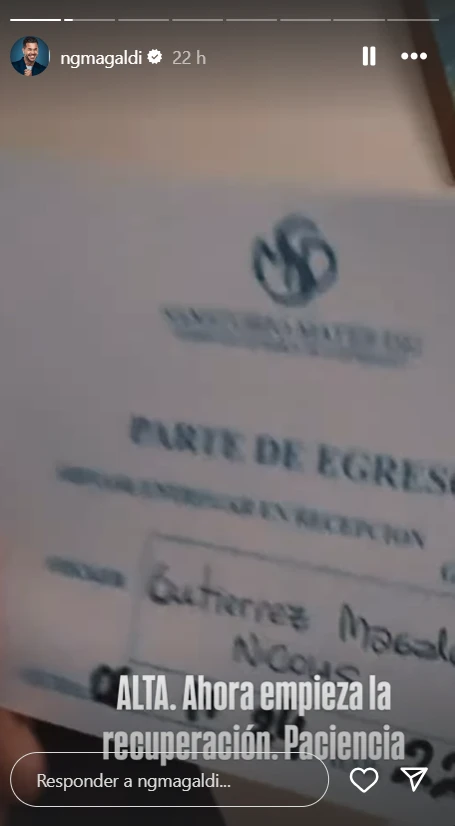 "A veces uno se debe ese descanso, ese espacio para respirar y reconocer lo lejos que ha llegado. Es aprender que la fortaleza no está solo en avanzar, sino en el valor de saber cuándo es momento de detenerse, cuando el cuerpo pide sanar. Porque liderar no siempre significa correr más rápido. A veces, liderar es saber cuándo reducir el paso y mostrar a los demás que la verdadera fortaleza está en cuidarse, en sanar para seguir construyendo, ahora con más salud y claridad que nunca. Hoy el camino sigue, pero sin dolor. ¿Vos ya hiciste tu pausa? Un abrazo a todos", concluyó Magaldi.