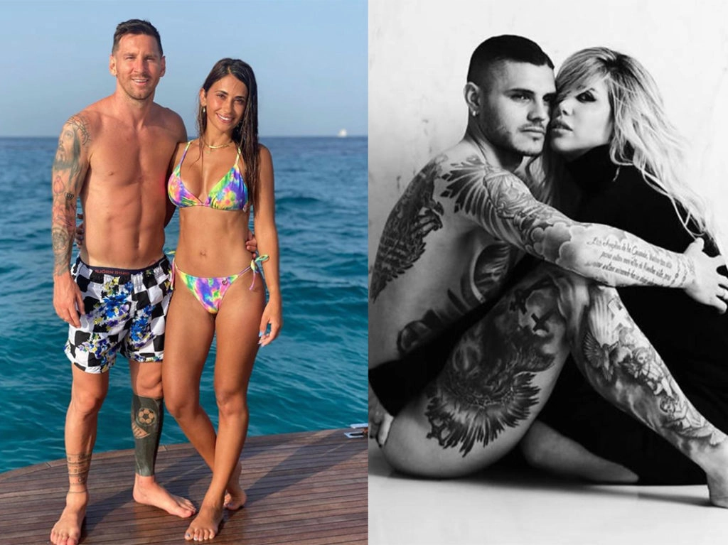 Eso sí, en ambas fotografías, las marcas están bien a la vista, claramente por los contratos y compromisos de los jugadores. Versace y Adidas fueron las firmas que detentan las remeras de Roccuzzo y Messi; Supreme y Nike, las marcas que lucieron en su momento Nara e Icardi.
