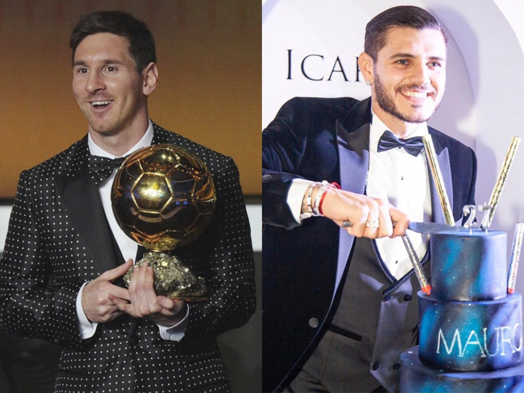 Por su parte, Icardi optó por un estilismo muy similar al de Messi en ocasión de la celebración de unos de sus cumpleaños más recientes, cuando optó por vestir un smoking con solapa rasada, también con moño pero complementado con un chaleco.
