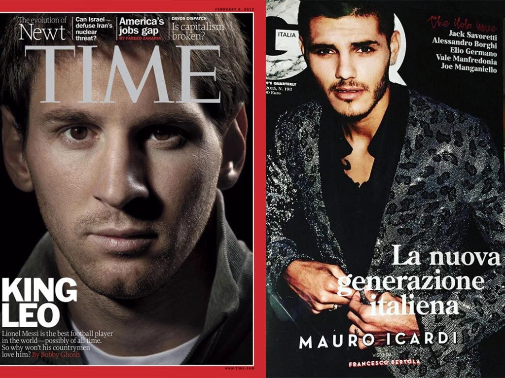 Icardi suele protagonizar campañas de moda de firmas como Dolce & Gabbana y es habitué de la primera fila de los desfiles. Es por eso que fue elegido en varias oportunidades de tapas fashionistas, como ésta de GQ Italia, que lo retrató con un traje con glitter y lo eligió como ícono de "la nueva generación italiana".