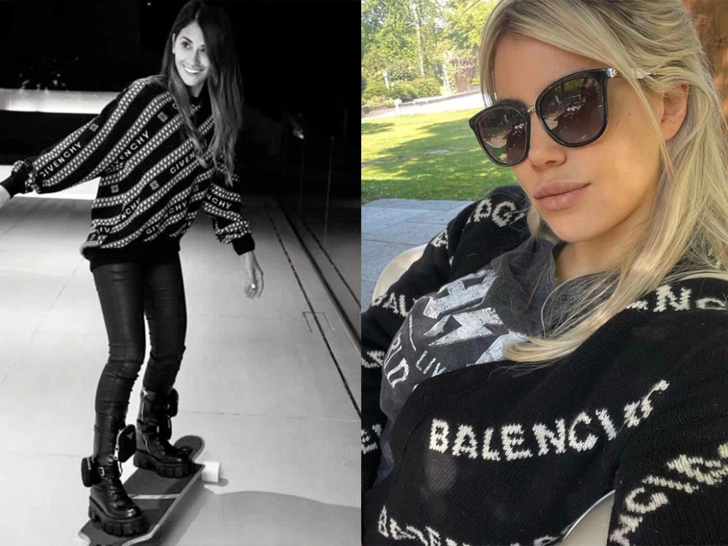 En la siguiente postal, ambas lucen sweaters firmados por marcas de lujo. Mientras Antonela se mostró en una oportunidad con un pullover Givenchy, el elegido de Wanda es Balenciaga, la firma comandada por Denma Gvasalia, unos de los favoritos de la empresaria cosmética.