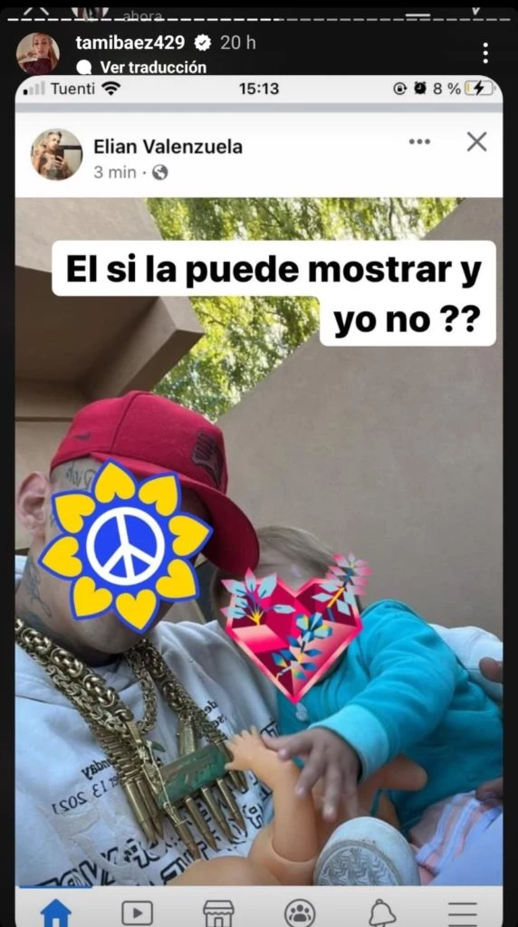 En el día de ayer los seguidores de Tamara Báez le hicieron llegar a la joven una foto de L-Gante en la que puede vérselo con la bebé. "El si la puede mostrar y yo no??", exclamó indignada, al ver que se trataba de un posteo de Facebook.