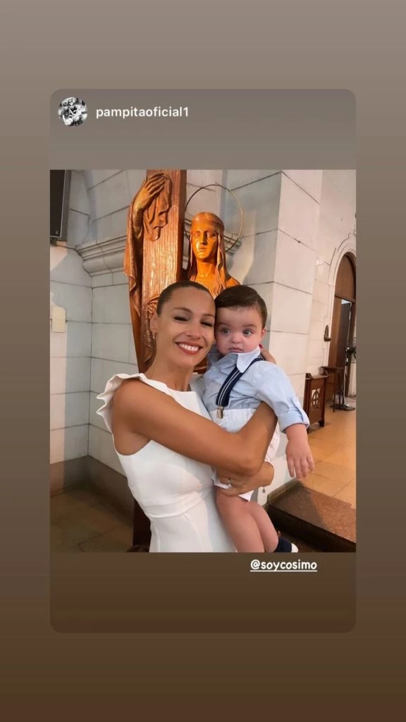 "¡Feliz de acompañarte en esta entrada a la iglesia! ¡Siempre voy a estar ahí para darte una mano y caminar juntos! Te amo @soycosimo ! Abrazo apretado a tus papás!", le escribió Pampita a Cosimo en la cuenta de su amiga Angie.