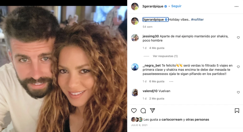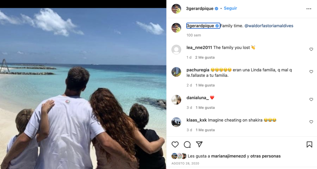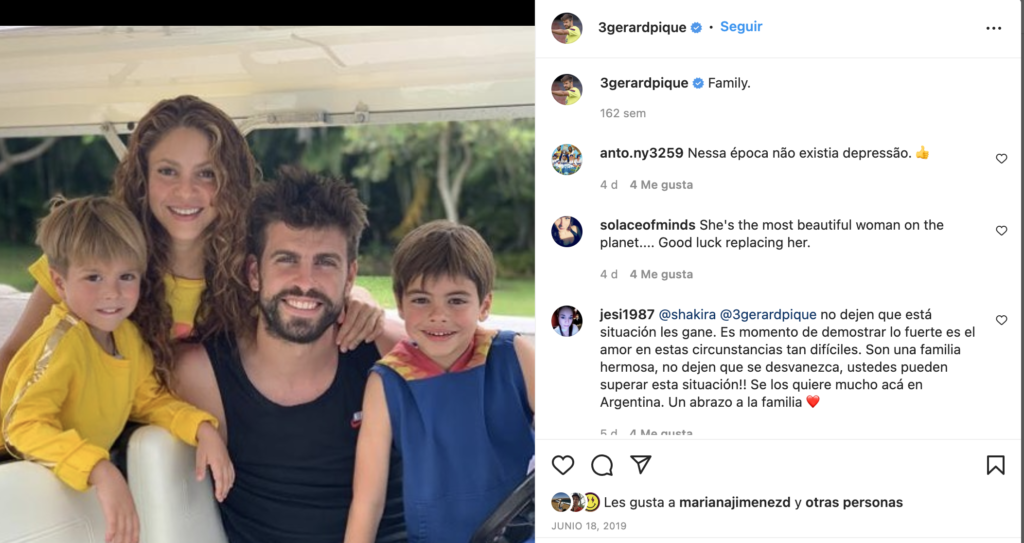 En ese sentido, al ingresar al perfil de Instagram de Gerard Piqué, @3gerardpique, podemos ver no solo fotos del futbolista en familia, sino también fotos de ambos solos muy amorosos y hasta posteos donde el jugador contempla a Shakira realizando alguna actividad cotidiana en su convivencia.