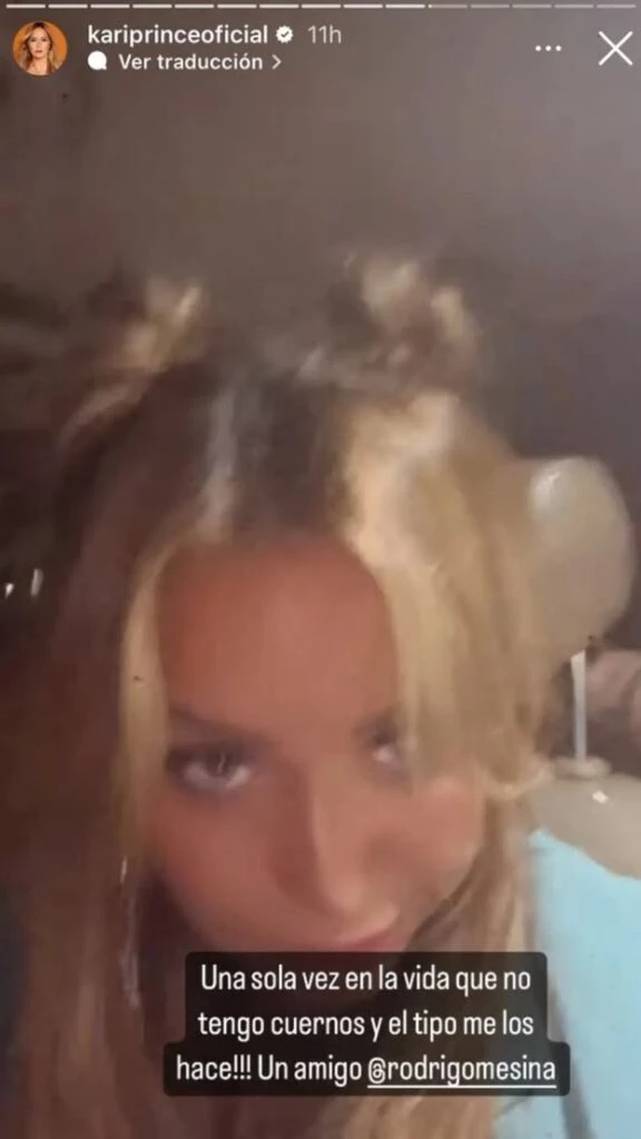Fue a través de una historia de Instagram que la artista publicó una selfie donde se la ve con un peinado de rodetes altos. "Una sola vez en la vida que no tengo cuernos y el tipo me los hace! Un amigo", expresó entre risas y a pura ironía mencionando a su amigo y estilista.