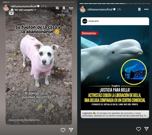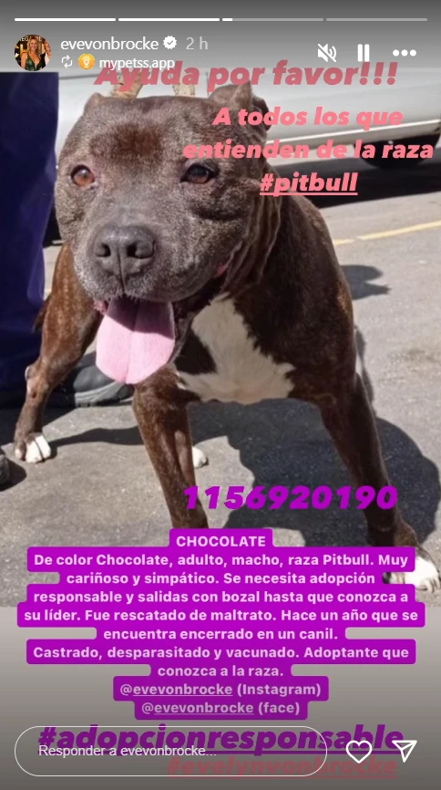 En sus historias de Instagram, la periodista sumó a este reclamo una serie de imágenes de perros de raza Pitbull, compartidas por cuentas dedicadas a esta causa, en pos de encontrar una familia que los adopte.