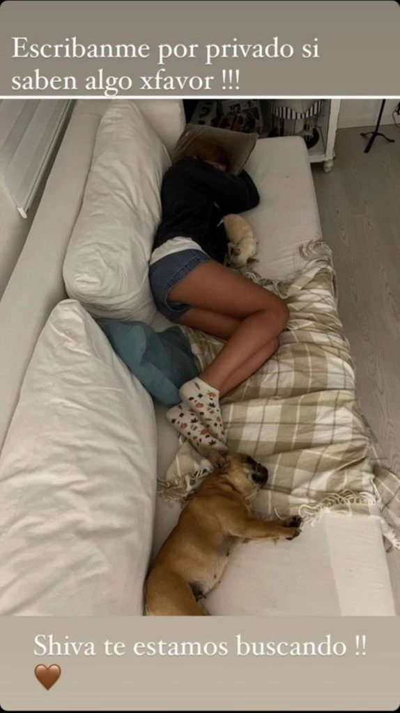 “Quién sea que se la haya llevado ofrecemos recompensa”, fueron las palabras que acompañaron una foto de Shiva en las stories de su perfil personal de Instagram. Luego, realizó otro en el que escribió: “Shiva, te estamos esperando”.