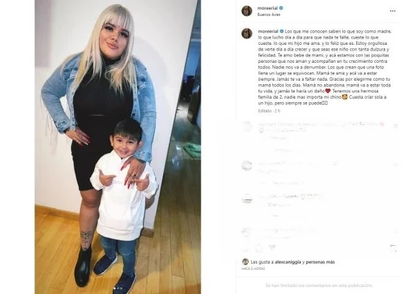 Y cerró, contundente: “Mamá no abandona, mamá va a estar toda tu vida, y jamás te haría un daño. Tenemos una hermosa familia de dos, nadie más importa, mi chino. Cuesta criar sola a un hijo, pero siempre se puede”.
