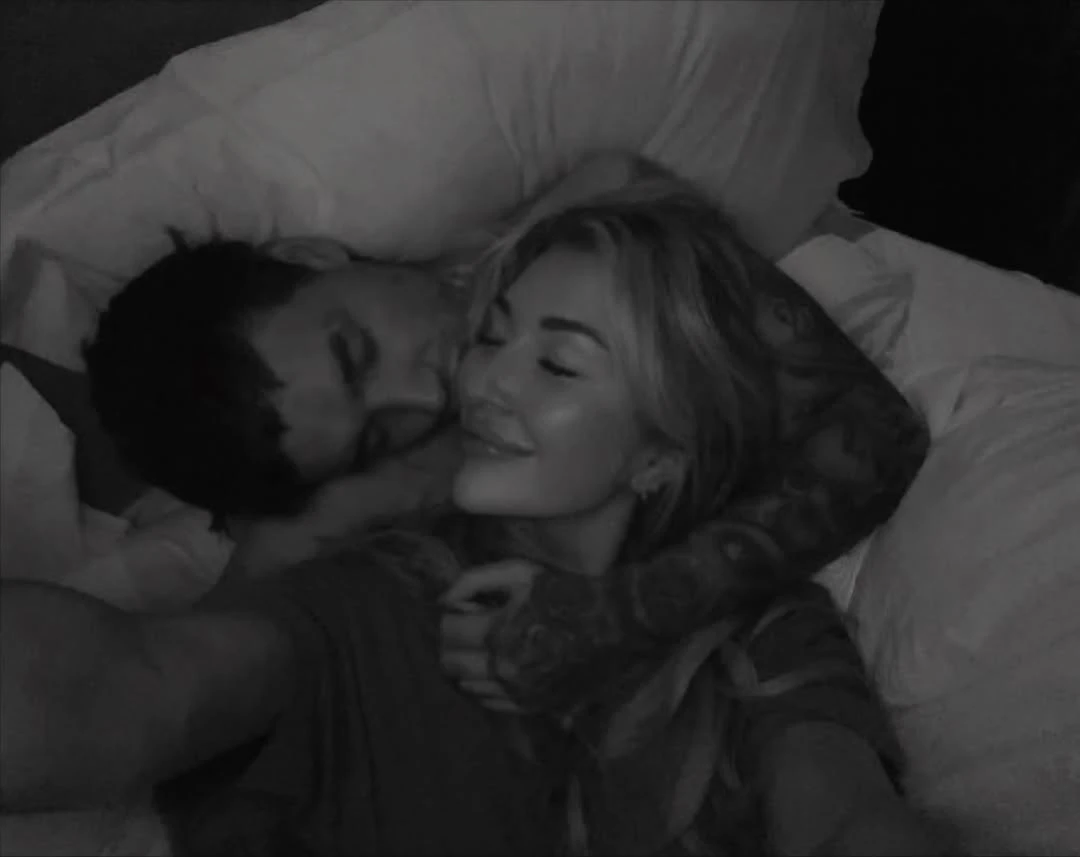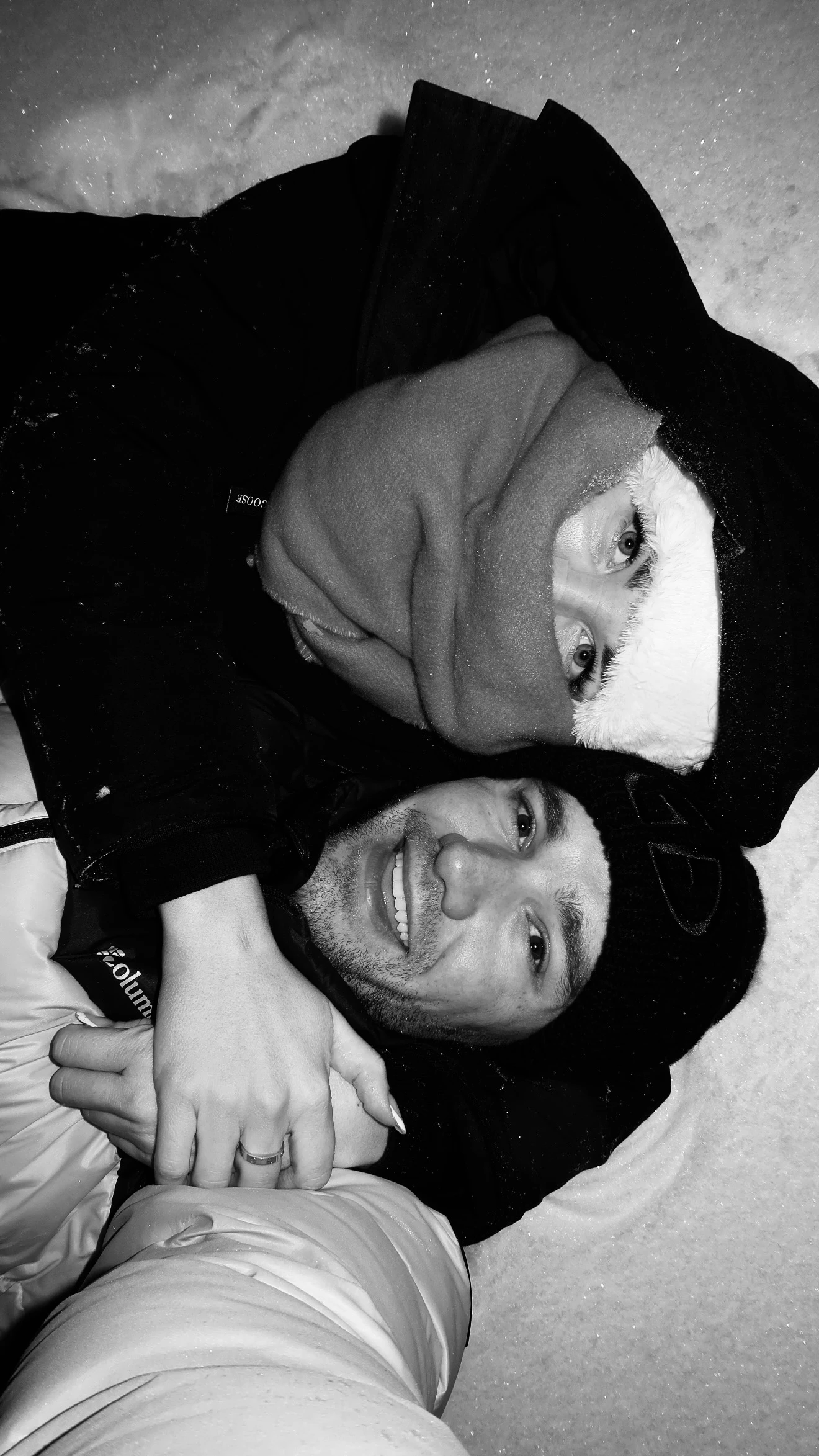 En la publicación, que rápidamente se viralizó, se pueden ver dos fotografías que reflejan la intimidad y complicidad que compartían. En la primera, publicada en el feed, ambos aparecen abrazados en la cama, en una imagen en blanco y negro que transmite cercanía y ternura. La segunda, compartida en sus historias, muestra a la pareja disfrutando de un momento al aire libre, recostados sobre la nieve, sonriendo y tomados de la mano.