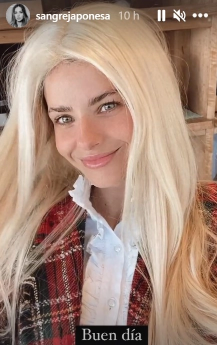 “Hoy me vestí de Cris Morena”, escribió la China en su story. La actriz lució una pollera escocesa negra y roja larga hasta los tobillos con un blazer haciendo juego y una camisa blanca con volados en las mangas y en el cuello, muy del estilo de la mamá de Romina Yan. Además, la actriz vistió una peluca larga rubia clara, muy similar a la cabellera de Cris.