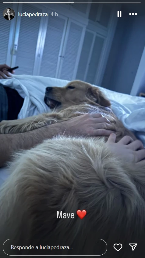 Luego de compartir este sentido posteo, Lucía subió una historia a su Instagram, en la que se la veía acostada en la cama, junto a su perro Maverick, hijo de Ayrton. De esta manera, mostraron que el duelo por la pérdida del Golden Retriver la están haciendo juntos en familia.
