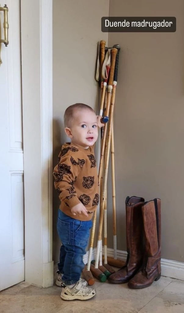 También compartió una foto de Amancio despierto desde temprano y muy activo por la casa de Benjamín. Lució un outfit super canchero de jeans, zapatillas y un buzo con dibujos de animales.