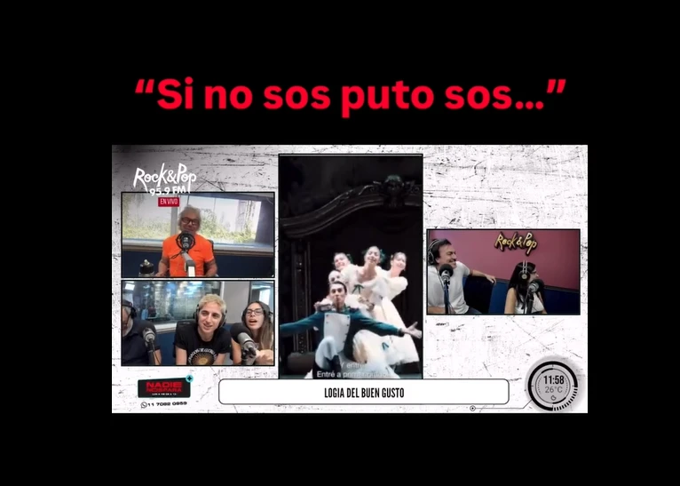 Mientras el reel se reproducía, al aire se escucharon frases como “p*to relajado” y “tratamientos para homosexuales”, en una alusión burlesca a las terapias de conversión. También hubo comentarios sexualizantes sobre su cuerpo y una expresión estigmatizante: “Si no sos p*to, sos de Araca”, reforzando prejuicios históricos sobre los varones en la danza clásica.