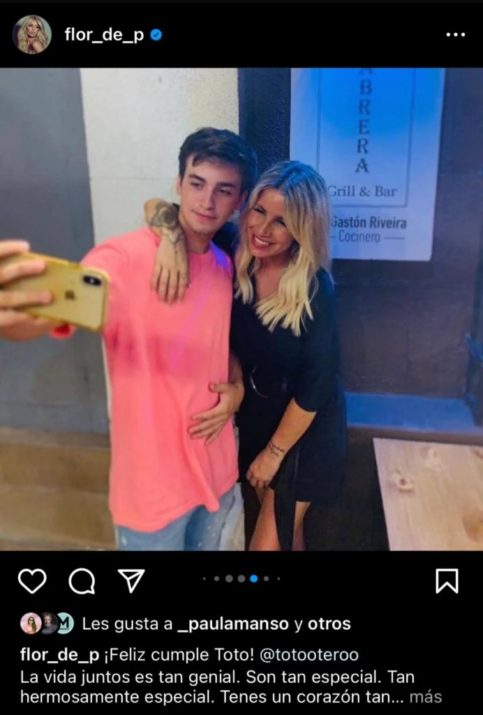 "Sólo deseo que seas libre siempre, para poder ser el que elijas ser. Tu mirada sobre la vida me alucina. Amo nuestras charlas y nuestras risas. Amo esas carcajadas cuando nos reímos de nosotros. De esta familia loca y hermosa que tenemos. Siempre es un gran plan estar juntos. Te amo para siempre. Y acá estoy para bancarte y acompañarte en este viaje", continuó Florencia, con una galería de fotos que muestra al joven en las distintas etapas de su vida.