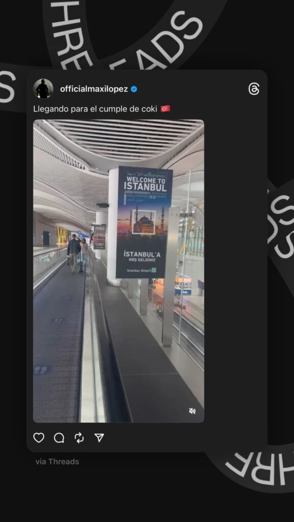 En sus historias de Instagram, Maxi posteó imágenes de su camino de Inglaterrra a Turquía: "Llegando para el cumple de Coki", puso entusiasmado. Luego, posteo un par de videos compartiendo con sus hijos, quienes se mostraron muy sonrientes con este reencuentro.