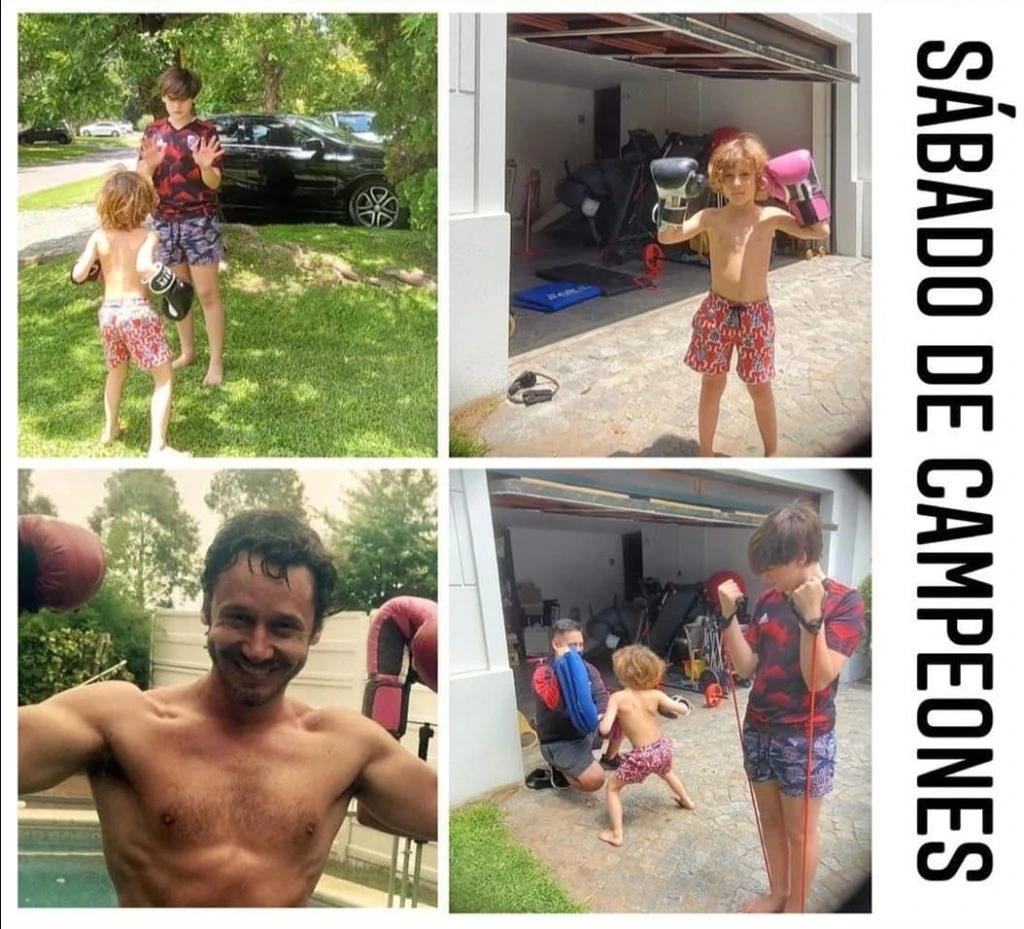 A través de sus historias en Instagram mostró a sus seguidores cómo arrancó su finde largo junto a sus hijos Beltrán, Benicio y Bautista. “Sábado de campeones”, escribió junto a las divertidas fotos de ellos entrenando.