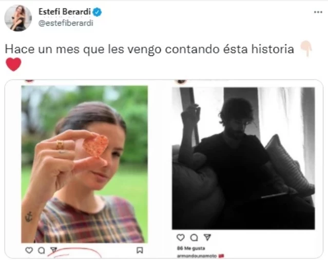 Berardi se percató de que ambos compartieron una imagen con un corazón y que además lucieron la misma prenda en otras de sus stories, un buzo con la misma imagen estampada, detalle que alimentó mucho más las sospechas.