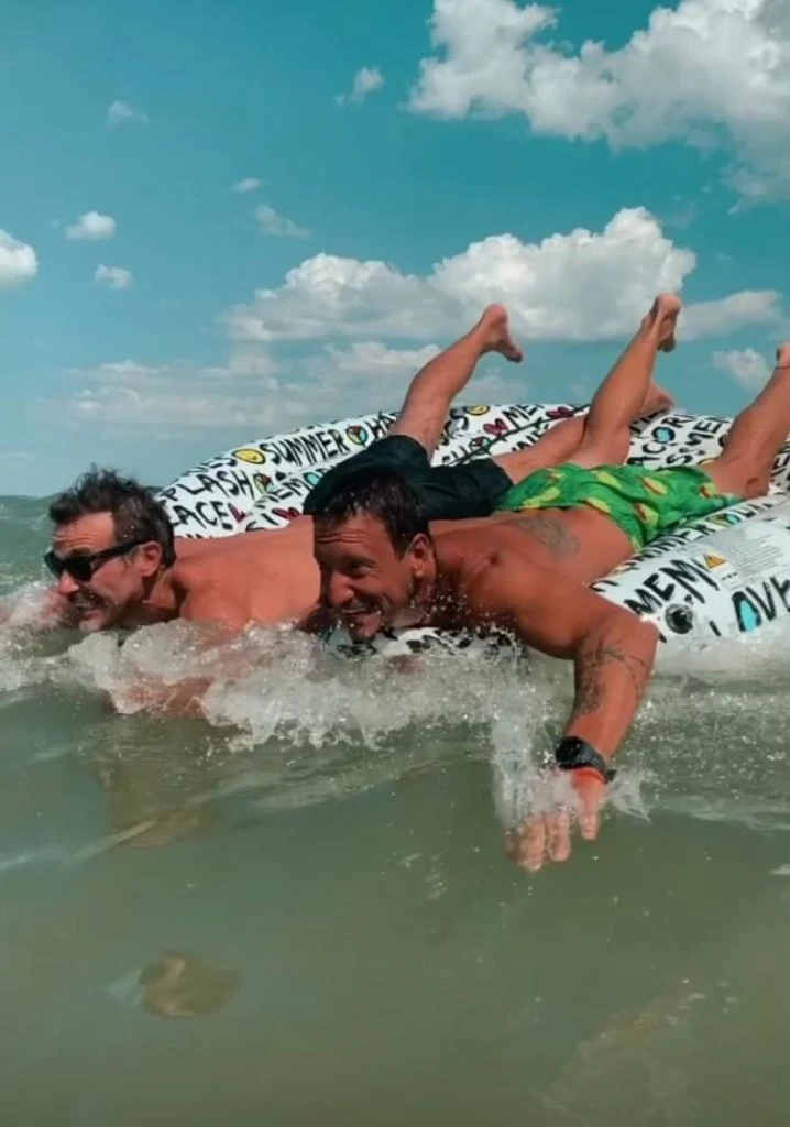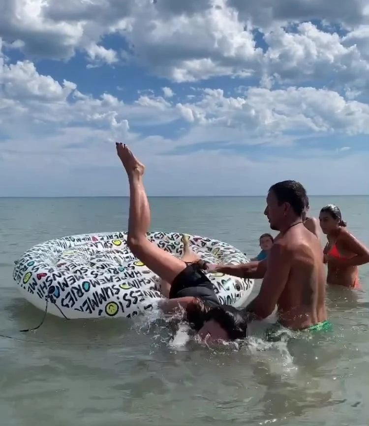"Le sacamos el jugo a este mar calmo, atípico", exclamó Gimena y no hay dudas de eso. Ya que gracias a un inflable redondo, todos se divirtieron con las casi inexistentes olas girando en el lugar, "surfeando", siendo remolcados y hasta cayéndose cuando menos lo esperaban –como le ocurrió a Paula Chaves.