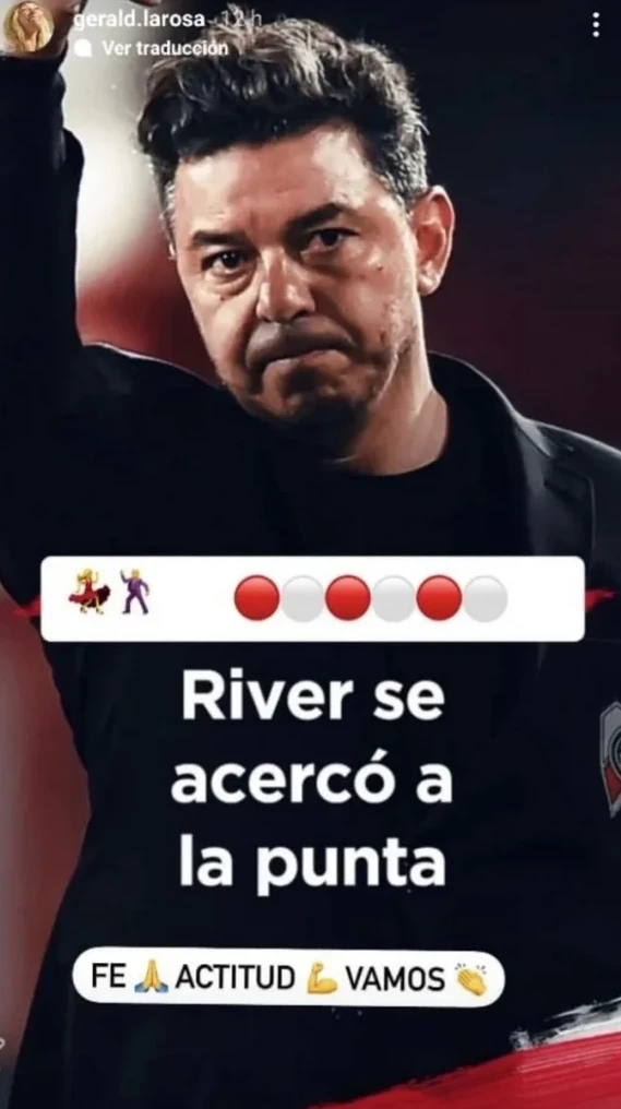 La madre de los hijos del director técnico compartió una imagen de él y alentó a River Plate: "River se acercó a la punta... Fe, actitud... Vamos".