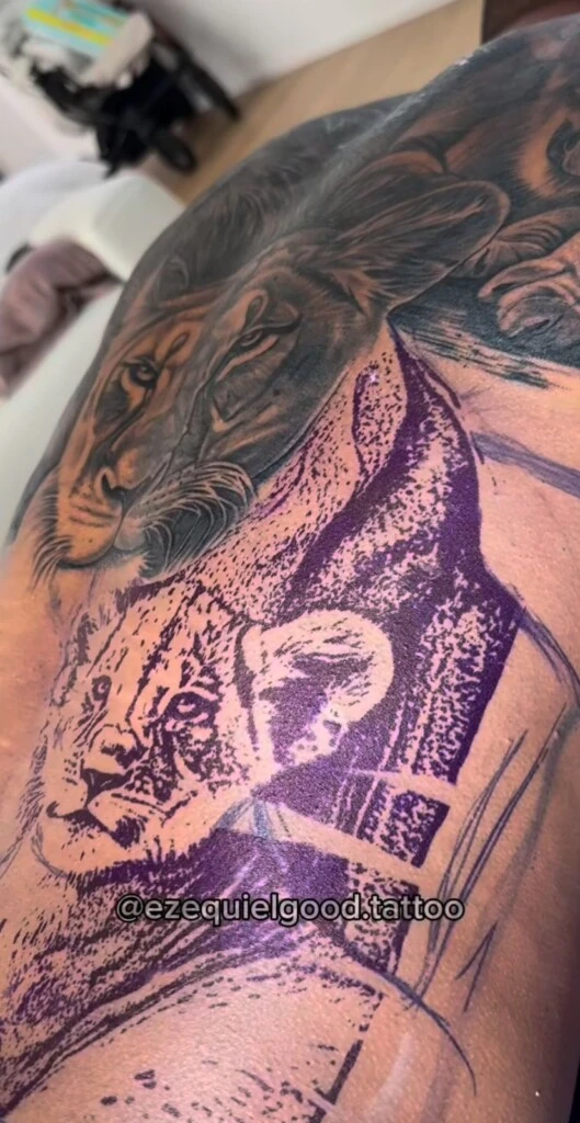 Romero se realizó un tatuaje realista en la que se puede ver una familia de leones. Allí se muestra un león, una leona y cuatro leoncitos que representan la familia que formó junto a Eliana Guercio, su gran compañera de vida.