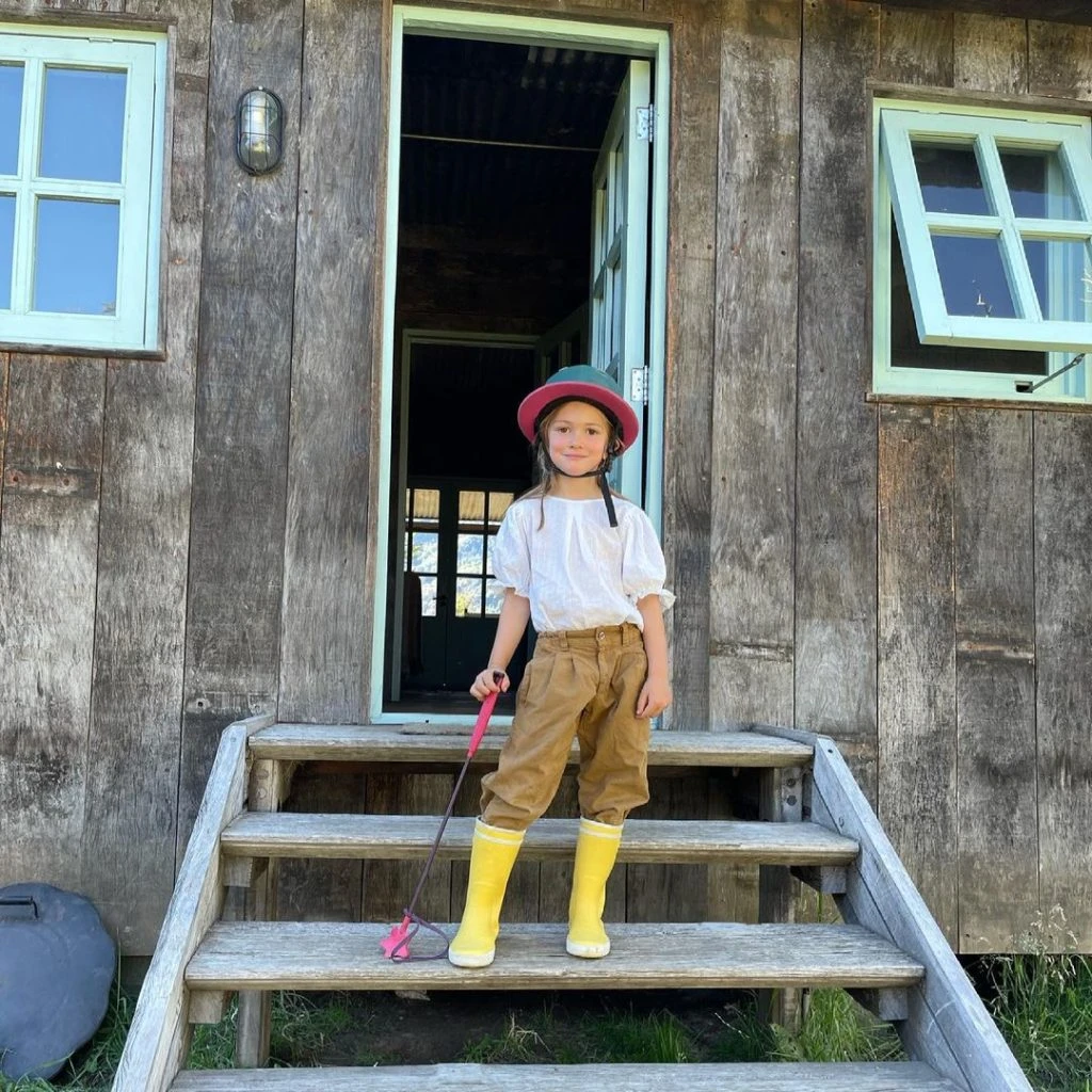 Sin botas, casco ni palo de polo, ella llegó al jardín con su pelo atado con dos moños rosas sujetando su vaso plástico de Maya y el Oso y luciendo una remera tricolor, un tapaboca gris con una correa de mostacillas blancas y negras, y un enterito de jean con pequeños bordados de flores a juego con las flores de plástico que colgaban de los tiradores de su mochila.