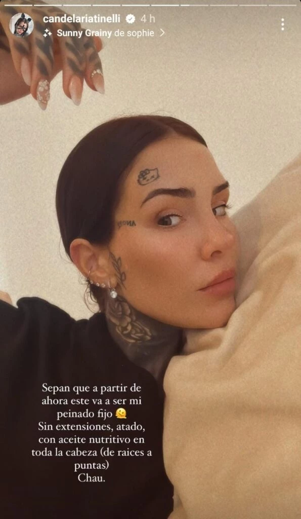 “Sepan que a partir de ahora este va a ser mi peinado fijo”,comenzó la modelo y agregó: "Sin extensiones, atado, con aceite nutritivo en toda la cabeza (de raíces a puntas). Chau".