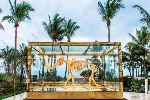 El Faena, que cuenta con 58 habitaciones y 111 suites decoradas en rojo y turquesa que ofrecen vista al océnano, está rodeado de arte. En las vistas exteriores del hotel, en el Mammoth Garden, se exhibe Gone but not Forgotten (2014), de Damien Hirst. Se trata de una escultura fabricada a partir del esqueleto de un mamut de tres metros y recubierto de oro ante la que la China no dejó de fotografiarse con Magnolia.