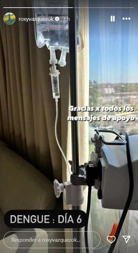 En sus redes sociales posteó una foto desde la habitación donde se recuperaba e intentó agradecer a su círculo más íntimo, al mismo tiempo que intentaba concientizar sobre la gravedad de esta enfermedad. "Cuídense por favor, el dengue no es joda", señaló.