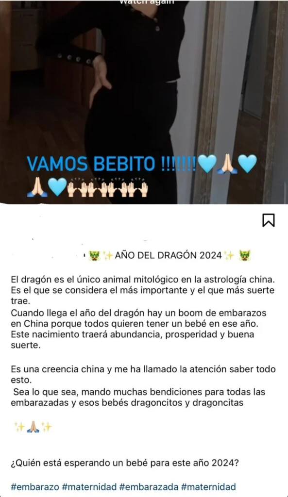 "El dragón es el único animal mitológico en la astrología china. Es el que se considera el más importante y el que más suerte trae. Cuando llega el año del dragón hay un boom de embarazos en China , porque todos quieren tener un bebé en ese año. Este nacimiento traerá abundancia, properidad y buena suerte", se lee en el texto que publicó.