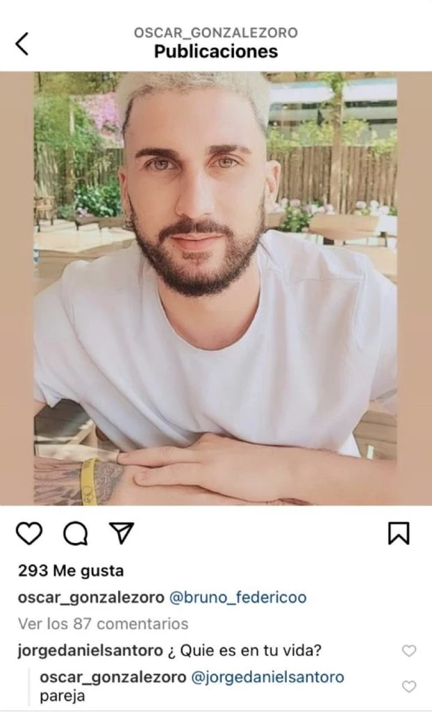 Al notar que el conductor compartía muchas imágenes de un joven, sus seguidores decidieron consultarle quién era este muchacho. "¿Quién es en tu vida?", le preguntó un usuario y el conductor contundente respondió: "Pareja". En esa línea, otro admirador también le preguntó de quién se trataba y ahí más desinhibido González Oro escribió: “amorcito”.