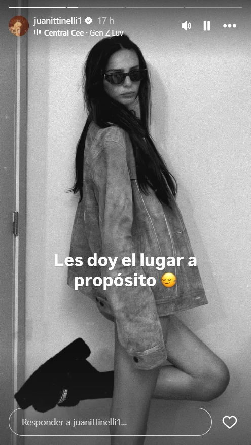 Luego, en otra historia, compartió un video en blanco y negro en el que aparece modelando frente a cámara, con anteojos oscuros, una campera oversize y botas, mientras posa de perfil con actitud relajada.
