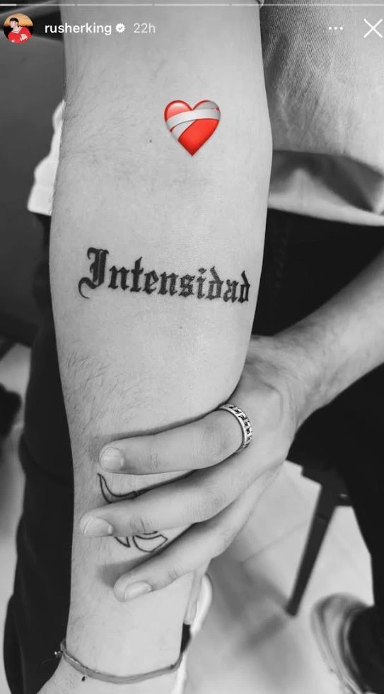 La particularidad de estos tattoos, es que en el caso del cantante tiene una coronita -símbolo con el que identifica a su carrera musical- y el del influencer tiene una píldora. Además, Rusher aprovechó su encuentro con el tatuador y le pidió que grabara en su antebrazo la palabra Intensidad, nombre de su último lanzamiento musical.